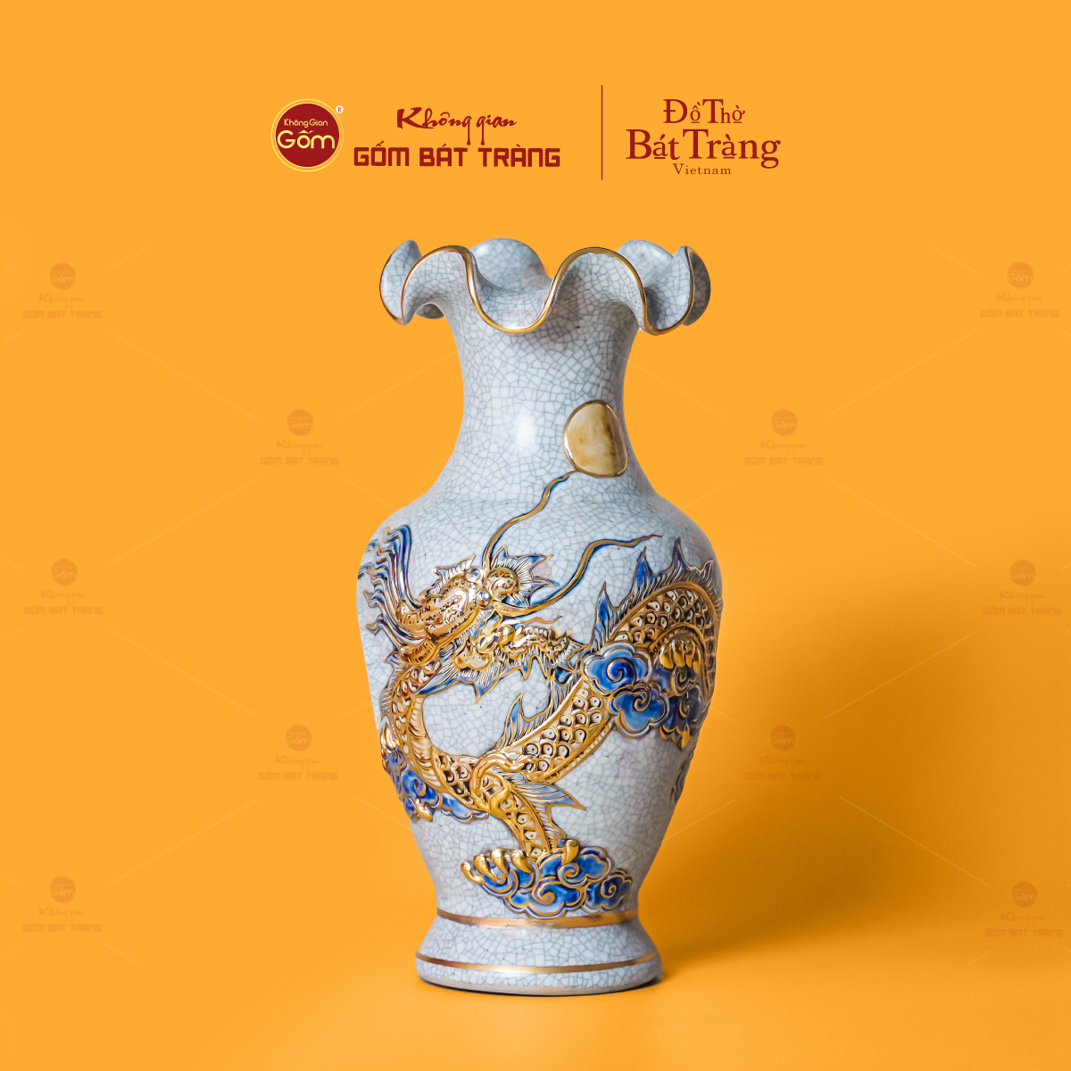 Mua Lọ Hoa Miệng Lượn Rồng Chầu Nhật Men Rạn Vẽ Vàng tại Tp.HCM