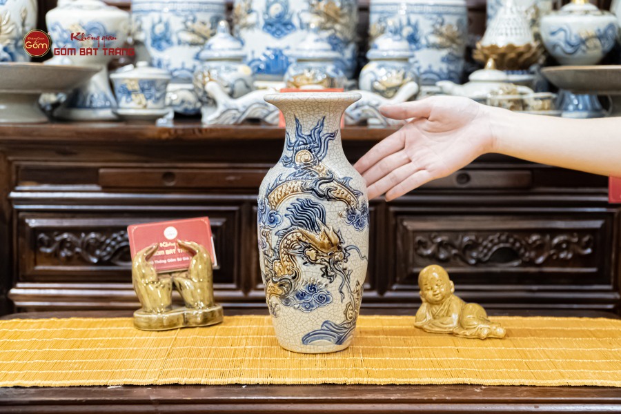 Nếu quý khách hàng đang tìm kiếm một vật phẩm thờ cúng chất lượng cao, mang đậm ý nghĩa tâm linh và vẻ đẹp truyền thống, hãy để Lọ Hoa Thờ Men Rạn Họa Tiết Cá Chép Hóa Rồng là sự lựa chọn hàng đầu. Hãy đến ngay showroom của Không Gian Gốm Bát Tràng hoặc gọi trực tiếp đến hotline để được đội ngũ nhân viên chuyên nghiệp của chúng tôi tư vấn chi tiết!
