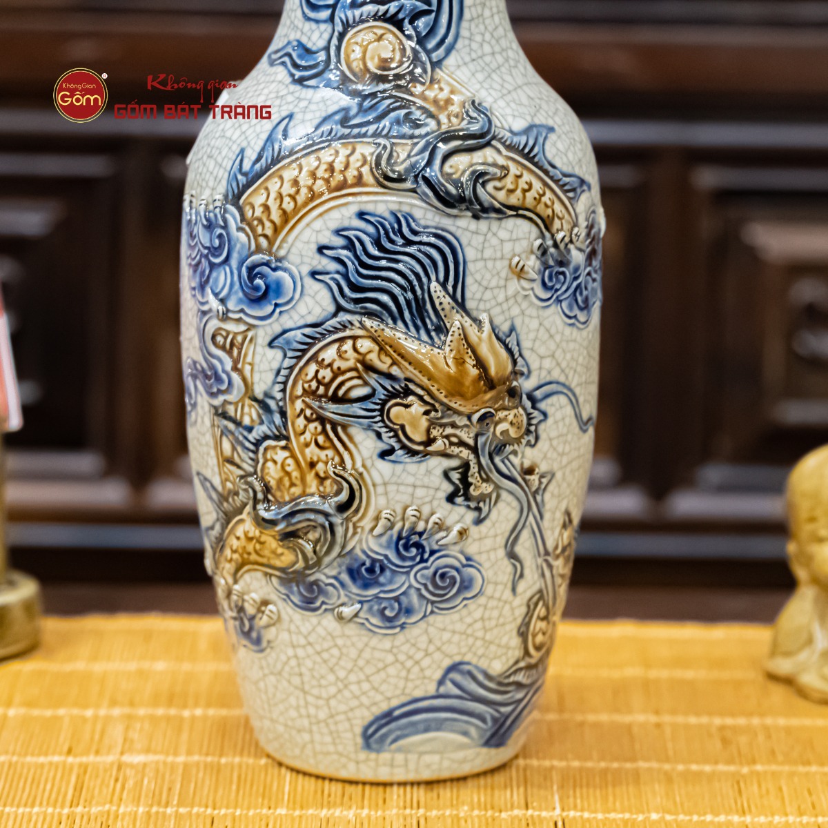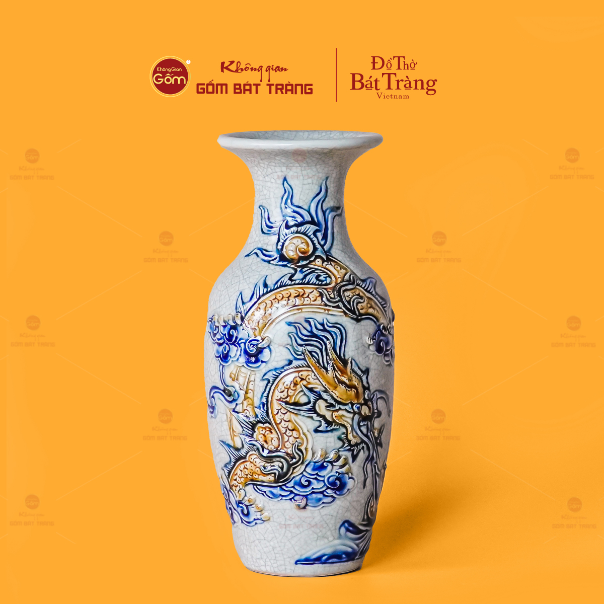 Lọ Hoa Thờ Men Rạn Họa Tiết Cá Chép Hóa Rồng