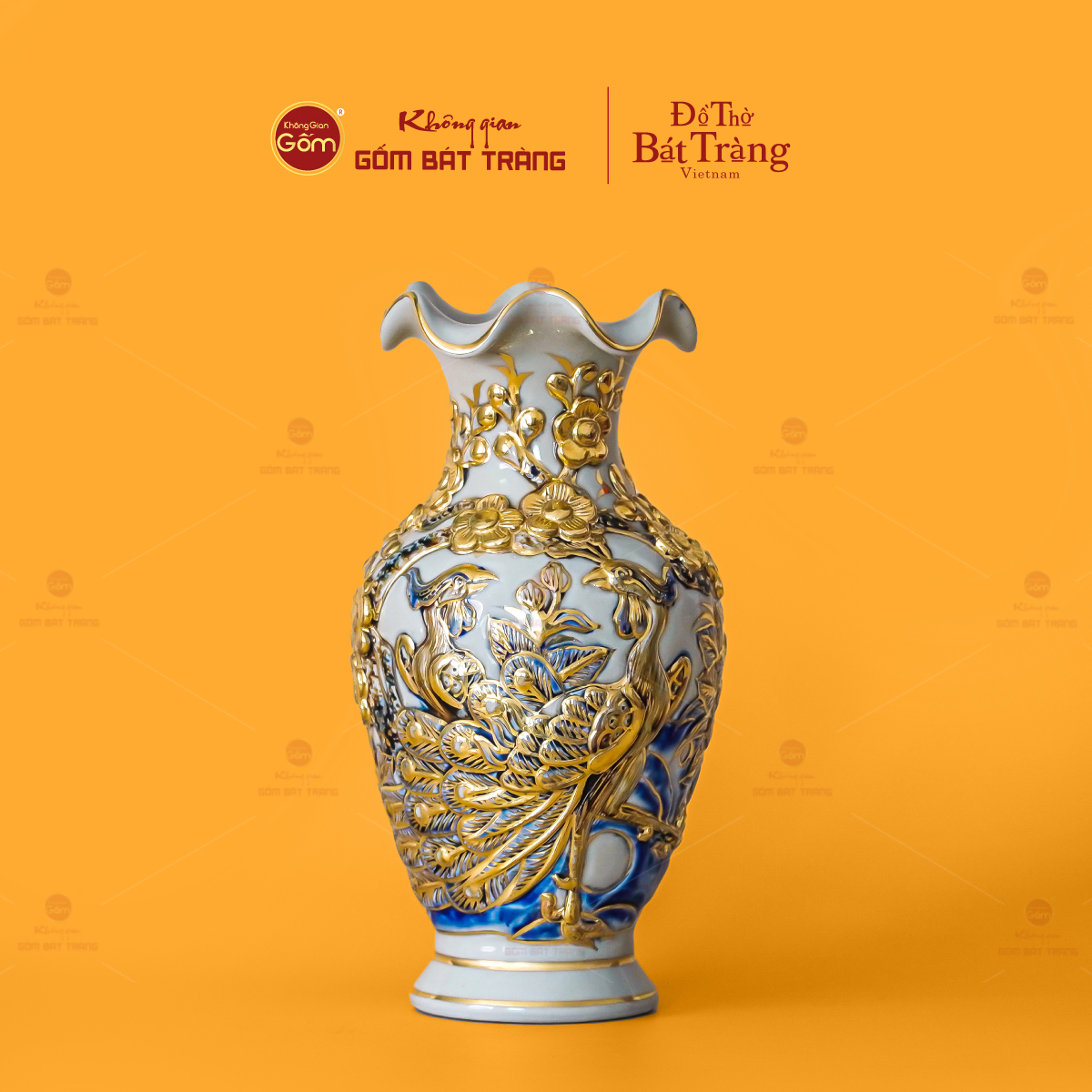Địa chỉ mua Lọ Hoa Thờ Miệng Lượn Men Hoàng Tộc Vẽ Vàng Họa Tiết Công Đào