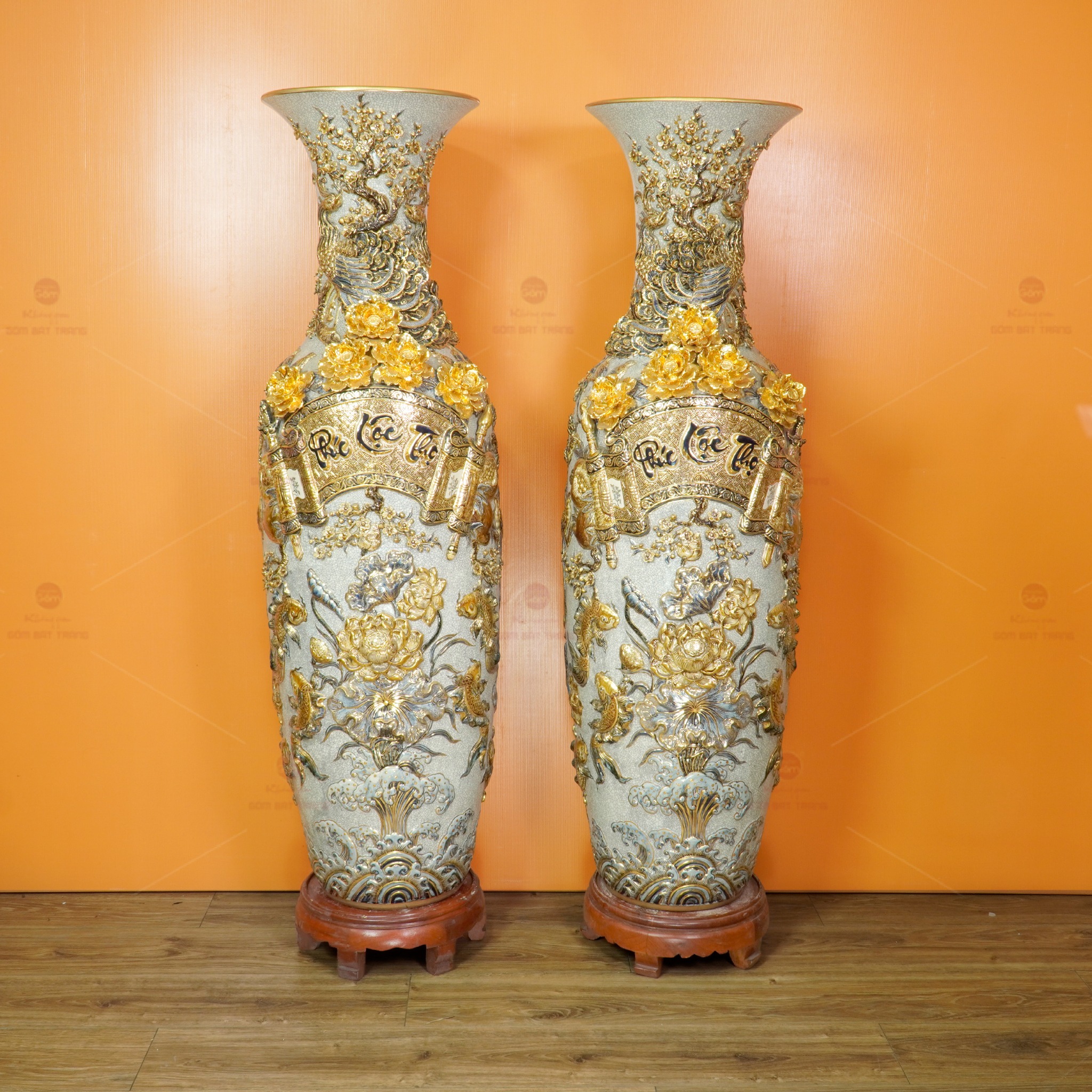 Địa chỉ mua Lộc Bình 1M4 Men Rạn Họa Tiết Phúc Lộc Thọ Đắp Nổi Vẽ Vàng