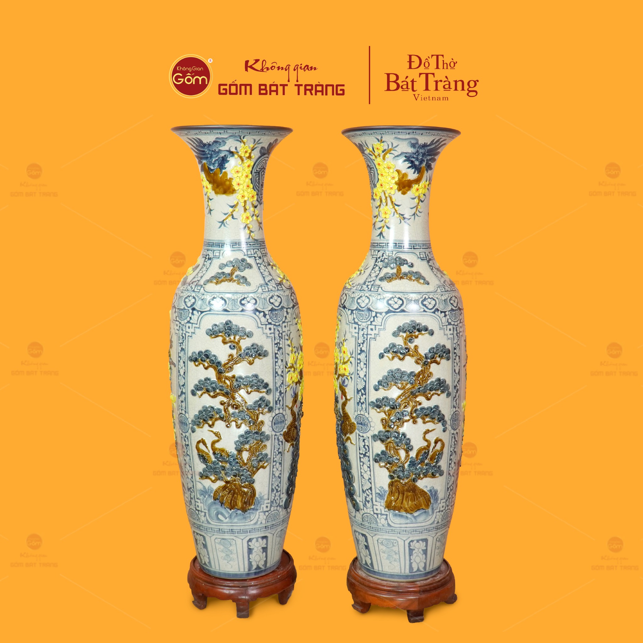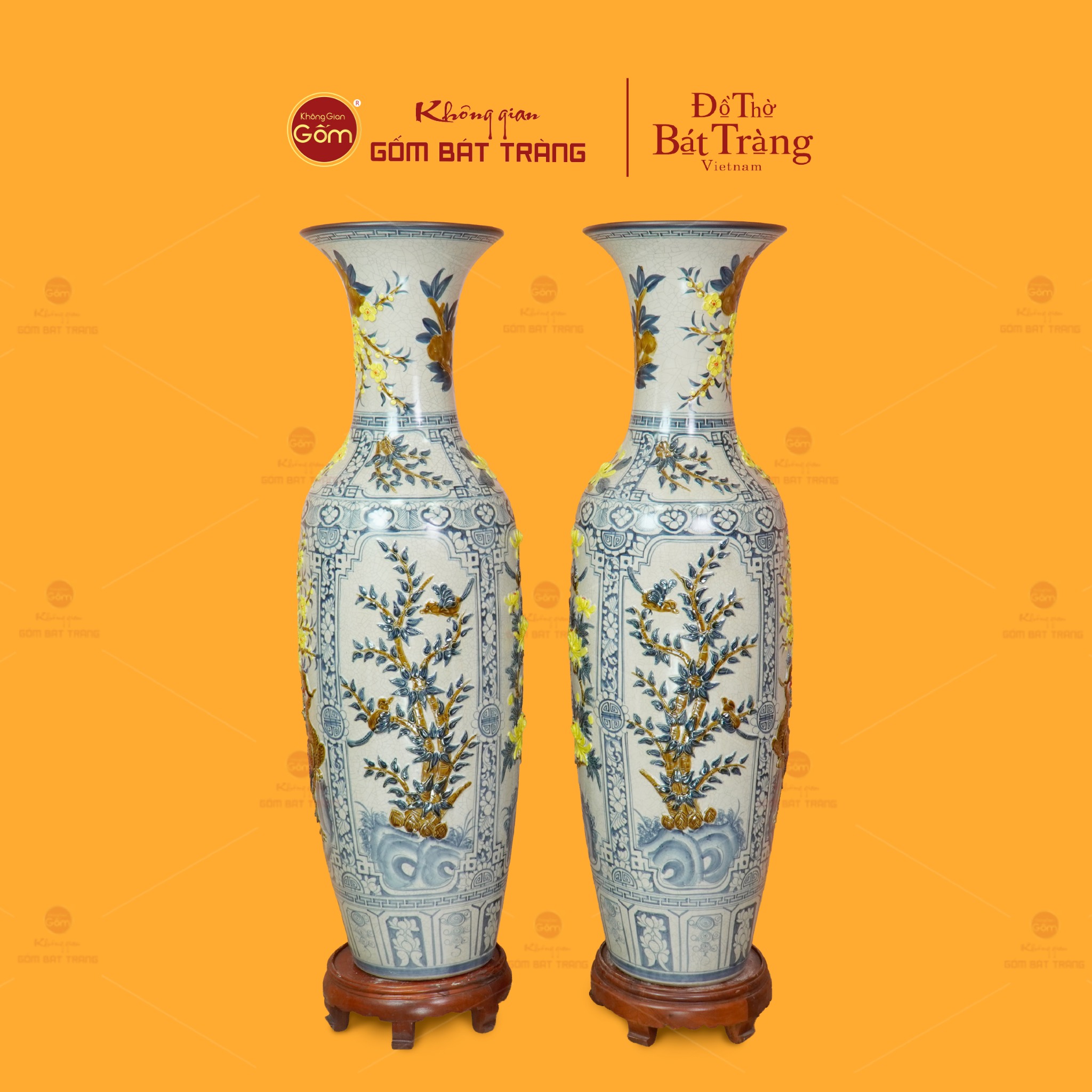 Đôi lộc bình men rạn tứ cảnh hoa vàng đắp nổi không chỉ là vật phẩm trang trí; đó còn là biểu tượng của sự trân trọng giá trị cổ truyền, là minh chứng cho tay nghề tinh hoa của nghệ nhân Bát Tràng và cũng là món quà mang nhiều lời chúc tốt lành.