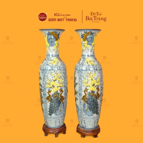 Lộc Bình 1M4 Men Rạn Họa Tiết Tứ Quý Hoa Vàng Đắp Nổi nằm trong nhóm sản phẩm mang vẻ đẹp sang trọng và tròn đầy giá trị nghệ thuật của Gốm Bát Tràng. Mỗi chi tiết đều được tạo hình bằng tay, thể hiện sự chăm chút tỉ mỉ của nghệ nhân và sự tinh tế trong phong cách trang trí truyền thống. Dòng sản phẩm này phù hợp để trưng bày trong phòng khách, sảnh lớn, không gian tâm linh hoặc làm quà tặng cao cấp, tượng trưng cho niềm mong cầu phát tài – thịnh vượng – bình an.
