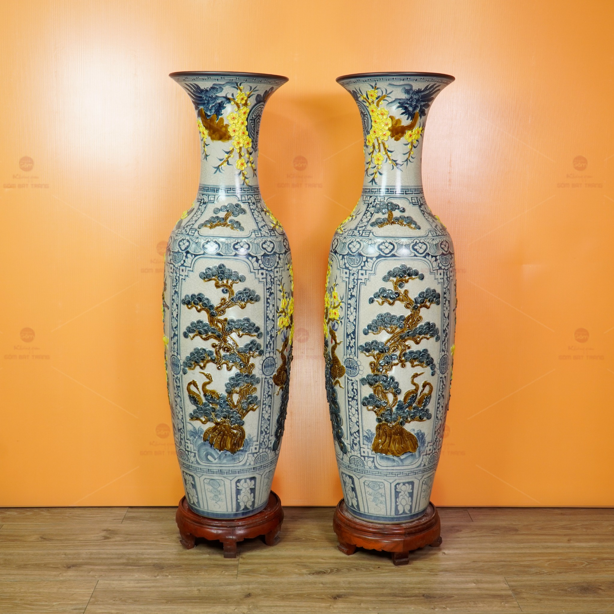 Địa chỉ mua Lộc Bình 1M4 Men Rạn Họa Tiết Tứ Cảnh Hoa Vàng Đắp Nổi