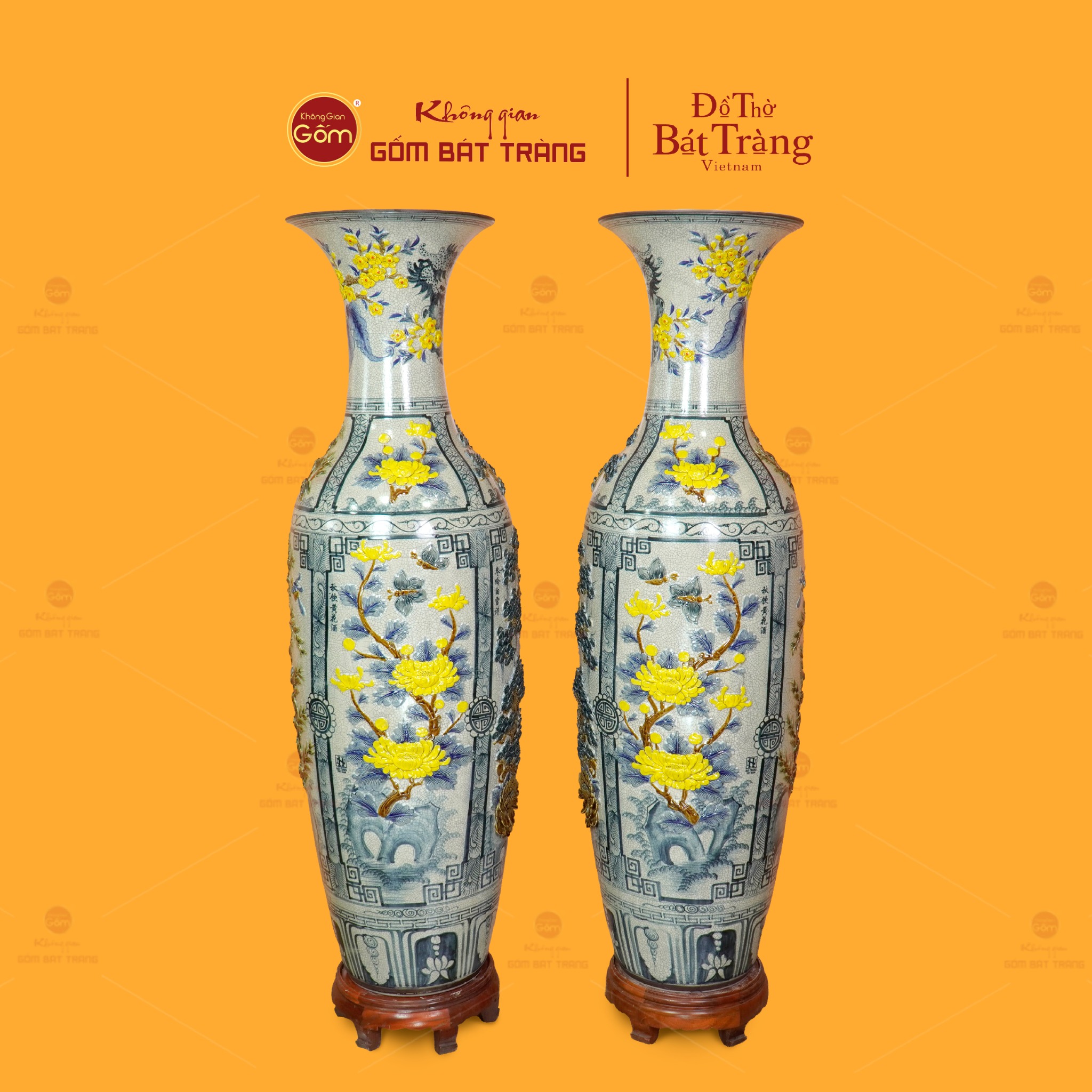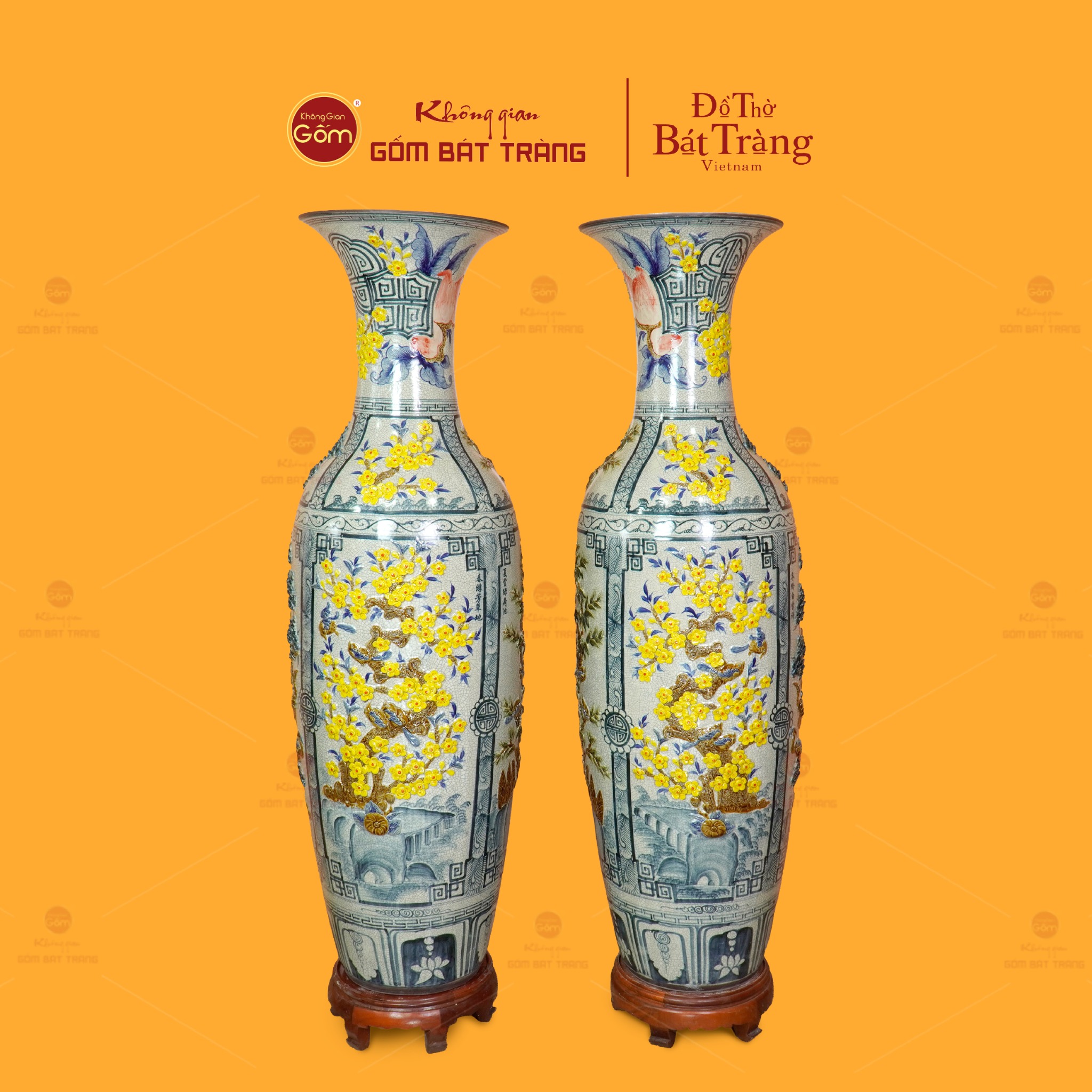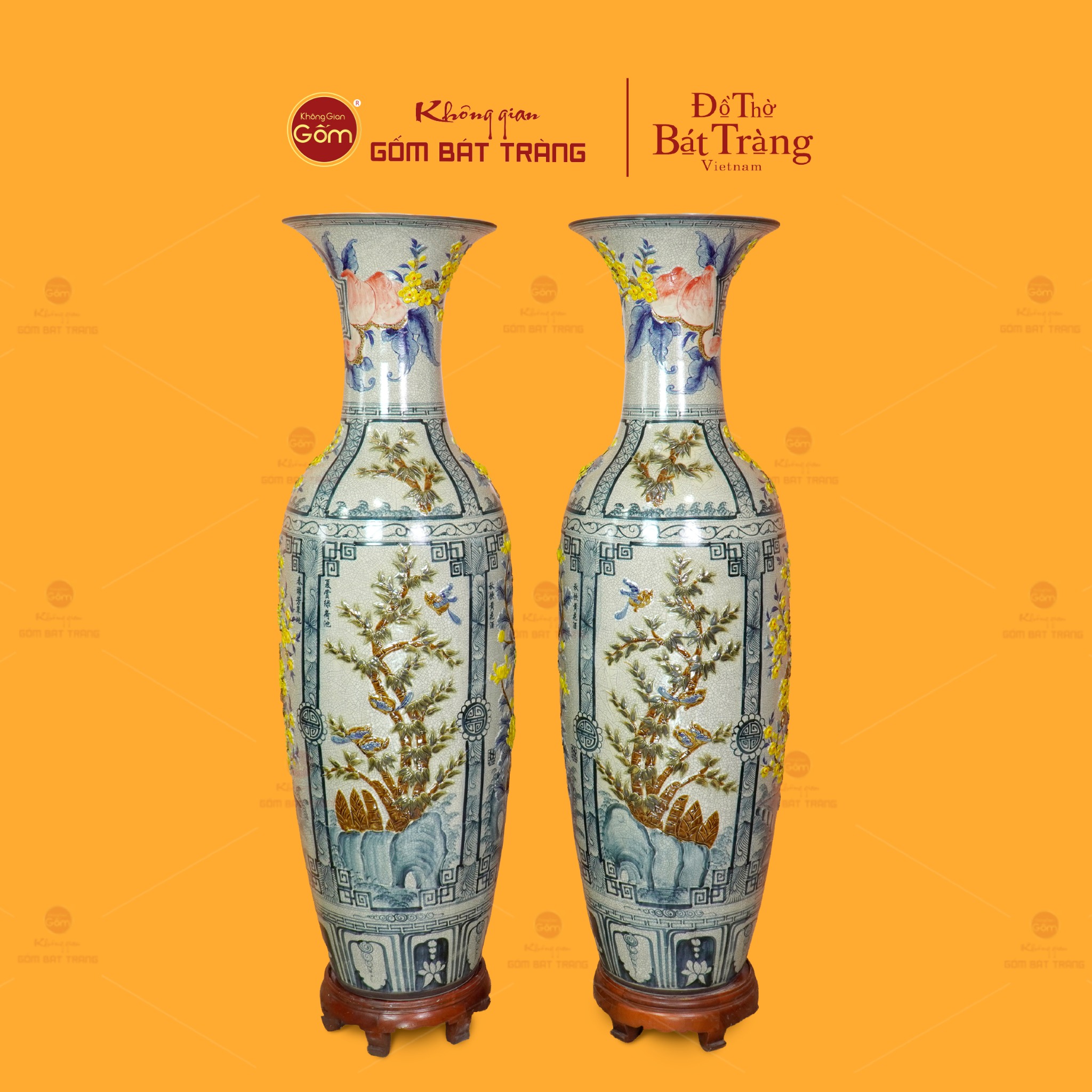 Đôi lộc bình men rạn tứ cảnh hoa vàng đắp nổi không chỉ là vật phẩm trang trí; đó còn là biểu tượng của sự trân trọng giá trị cổ truyền, là minh chứng cho tay nghề tinh hoa của nghệ nhân Bát Tràng và cũng là món quà mang nhiều lời chúc tốt lành.