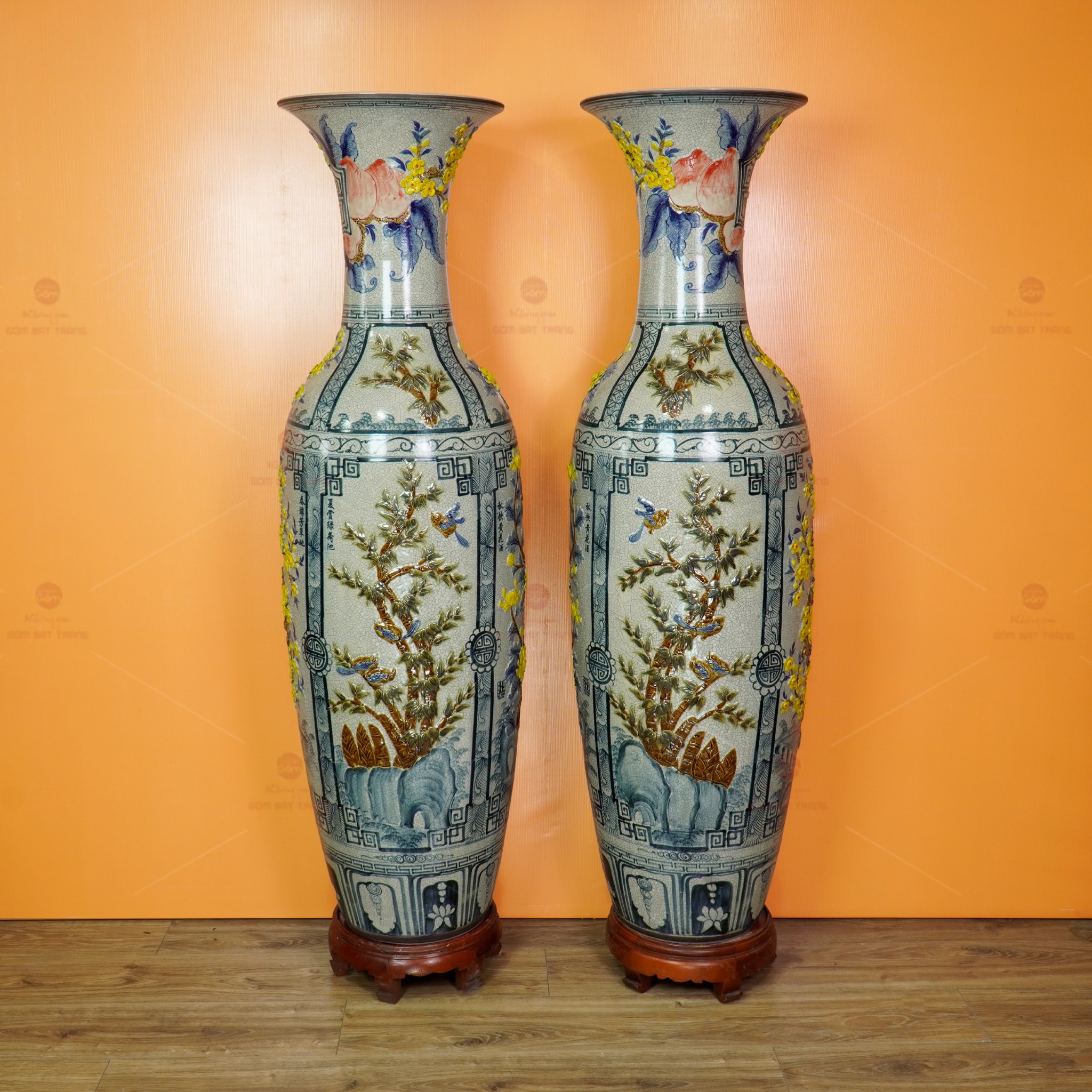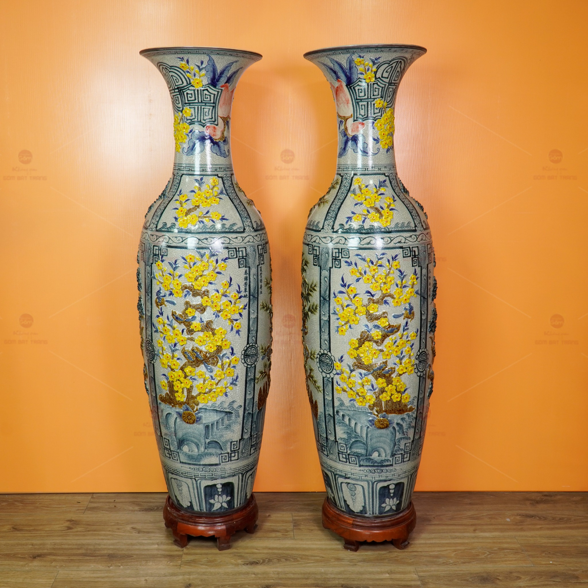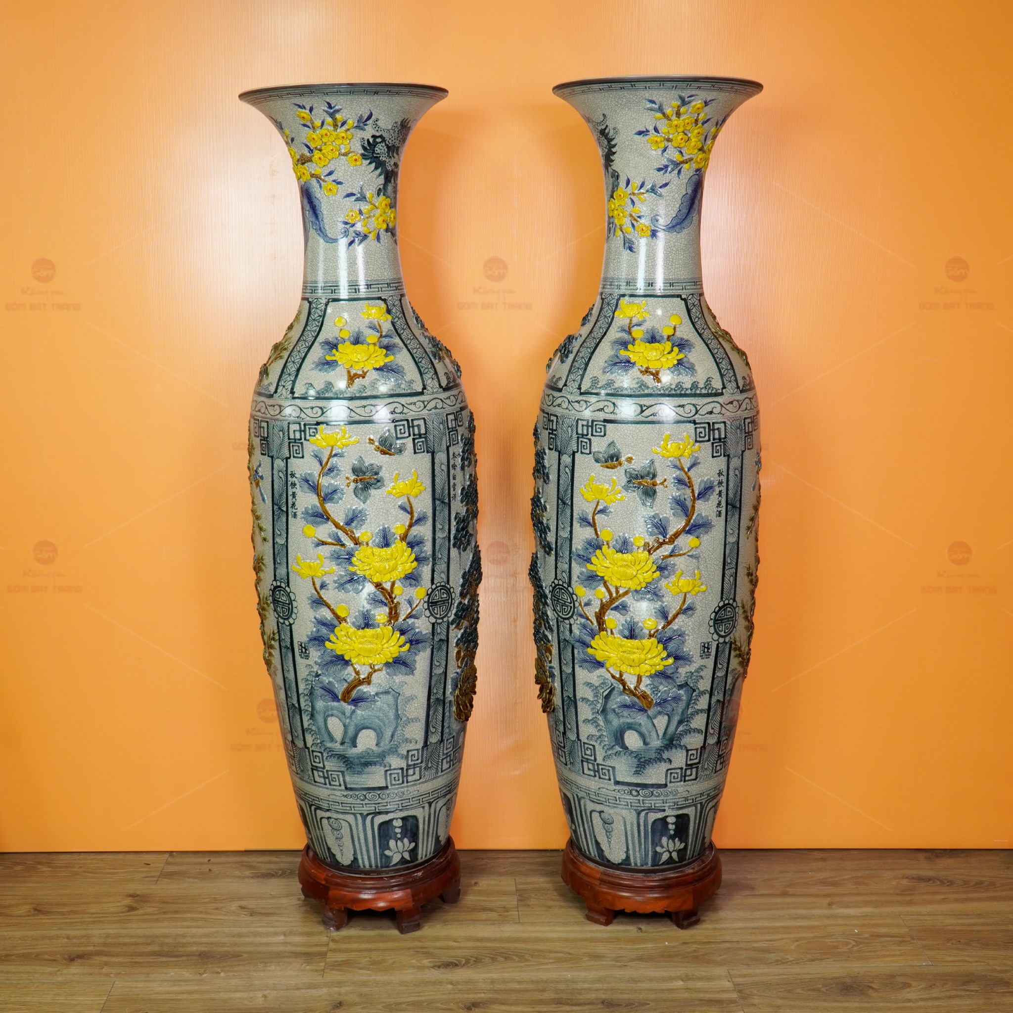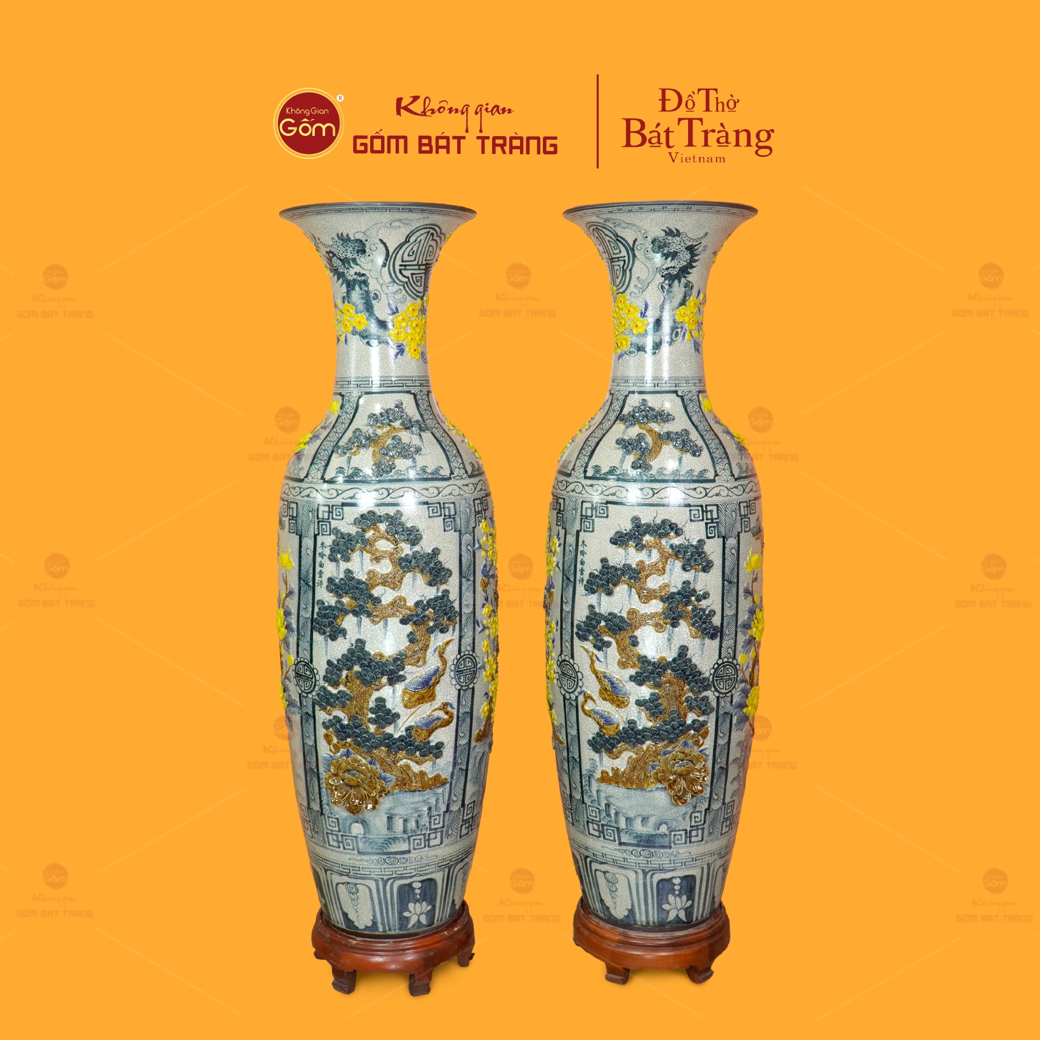 Đôi lộc bình men rạn tứ cảnh hoa vàng đắp nổi không chỉ là vật phẩm trang trí; đó còn là biểu tượng của sự trân trọng giá trị cổ truyền, là minh chứng cho tay nghề tinh hoa của nghệ nhân Bát Tràng và cũng là món quà mang nhiều lời chúc tốt lành.