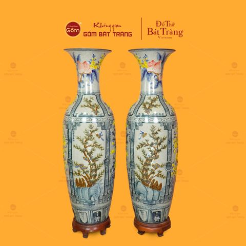 | Tên sản phẩm: | Lộc Bình 1M4 Men Rạn Họa Tiết Tứ Quý Hoa Vàng Đắp Nổi |