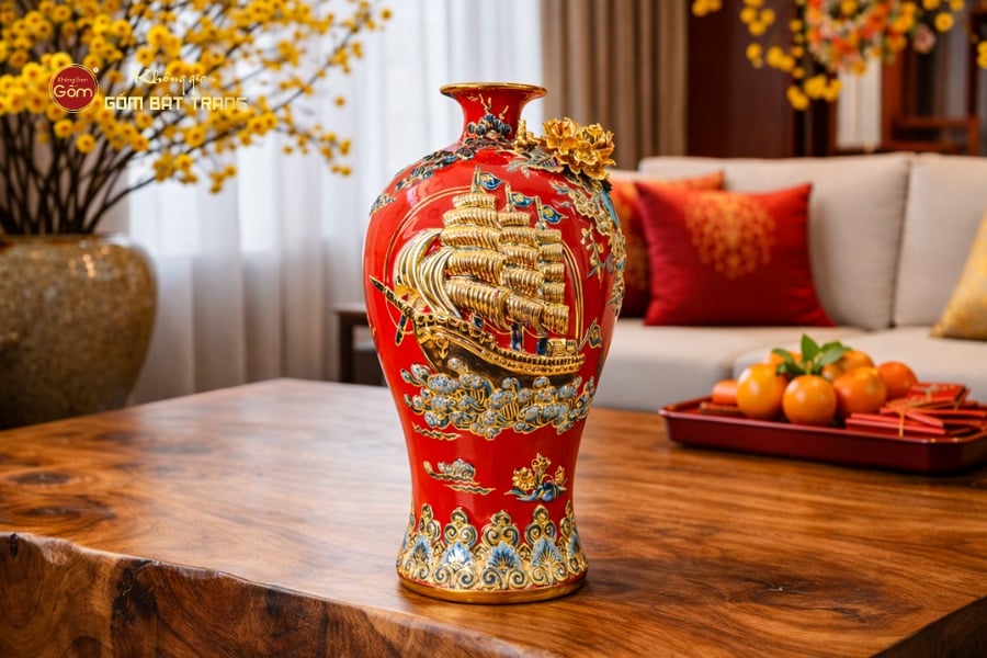 Địa Chỉ Mua Mai Bình Men Đỏ Thuận Buồm Xuôi Gió Đắp Nổi Vẽ Vàng uy tín