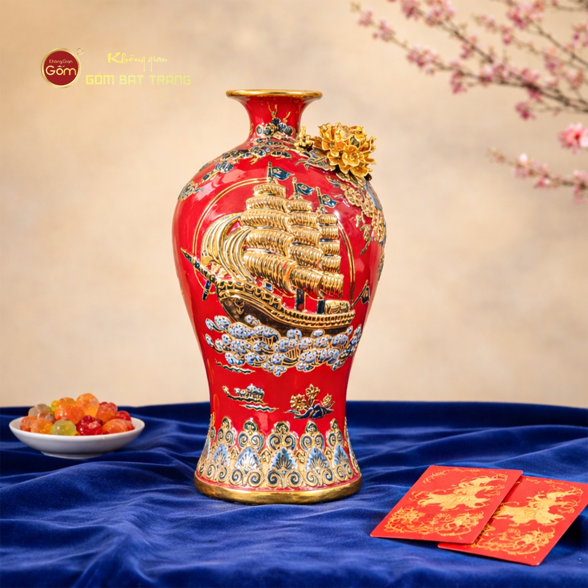 Mai Bình Men Đỏ Thuận Buồm Xuôi Gió không chỉ là tác phẩm nghệ thuật cao cấp mà còn là món quà khai trương, khởi nghiệp, tân gia, thăng chức đầy ý nghĩa, thể hiện lời chúc về thành công, tài lộc và sự nghiệp hanh thông!
