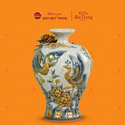 | Tên sản phẩm: | Mai Bình Men Rạn Đắp Nổi Họa Tiết Công Đào |