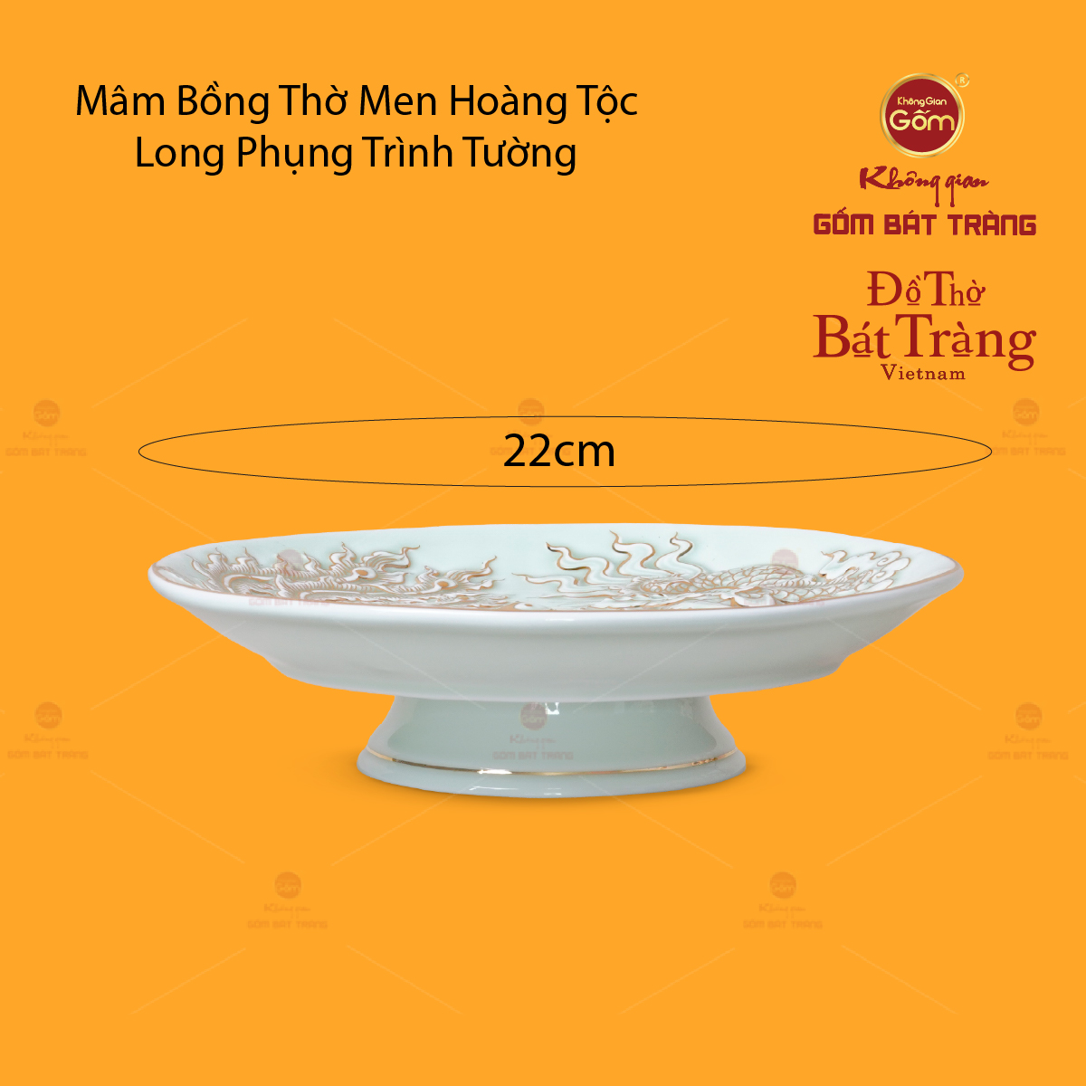 Không Gian Gốm Bát Tràng là địa chỉ uy tín chuyên cung cấp các dòng mâm bồng và đồ thờ gốm sứ Bát Tràng chính gốc. Mâm Bồng Men Ngọc Hoàng Tộc Long Phụng Trình Tường Vẽ Vàng tại đây được sản xuất trực tiếp tại xưởng, đảm bảo chất lượng gốm, nước men chuẩn và họa tiết vẽ tay tinh xảo.