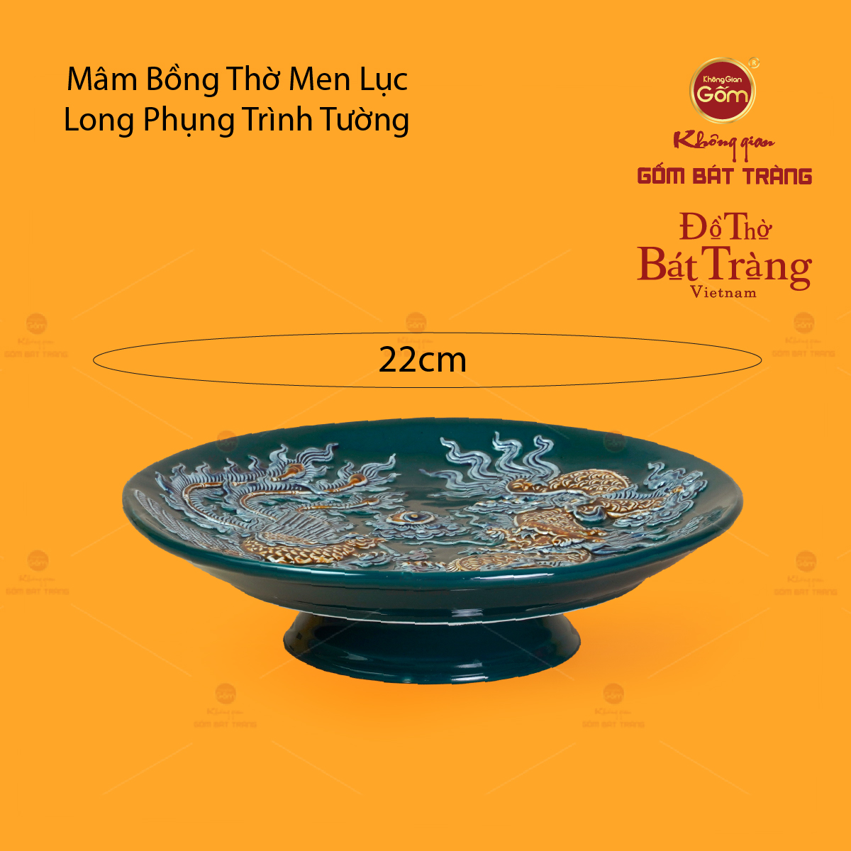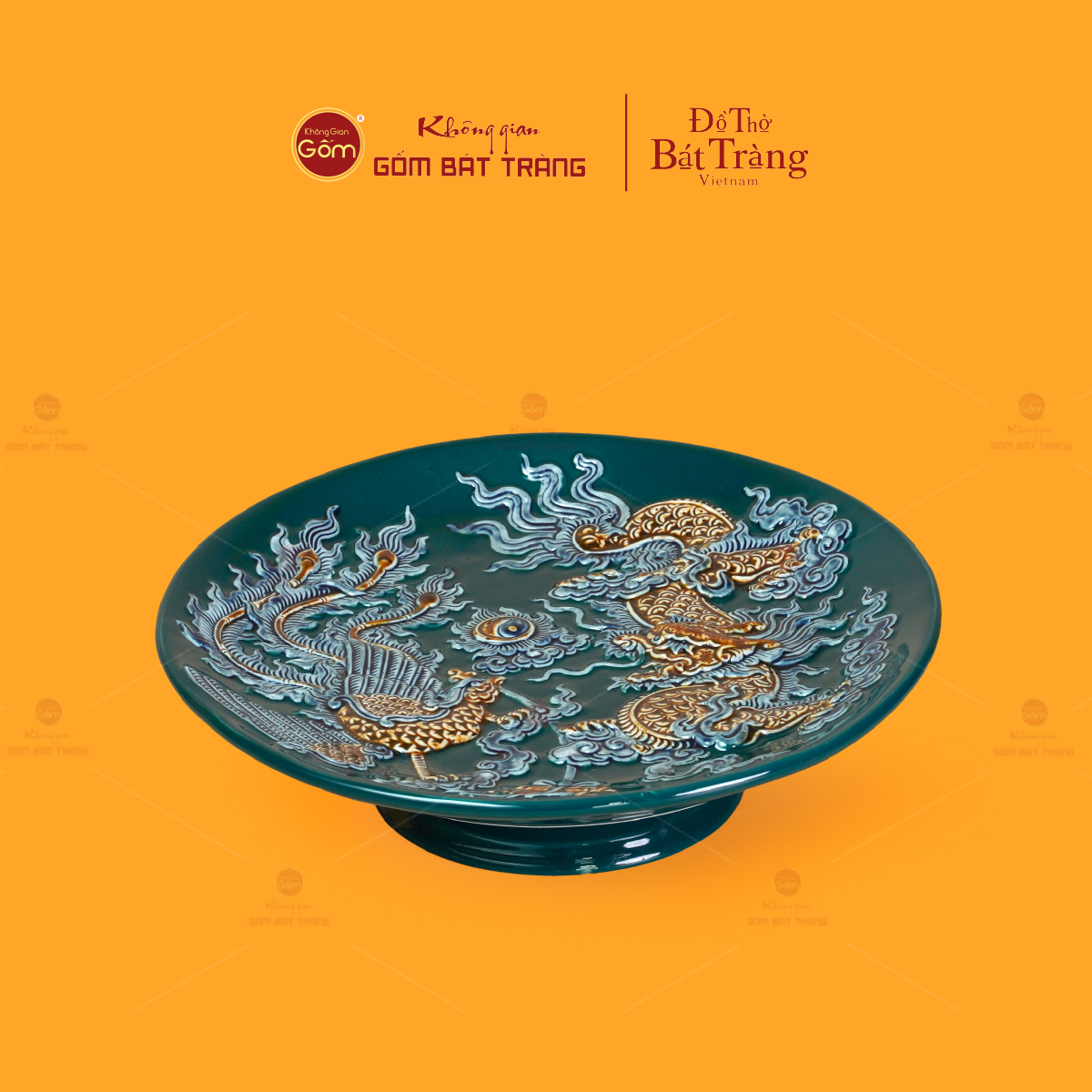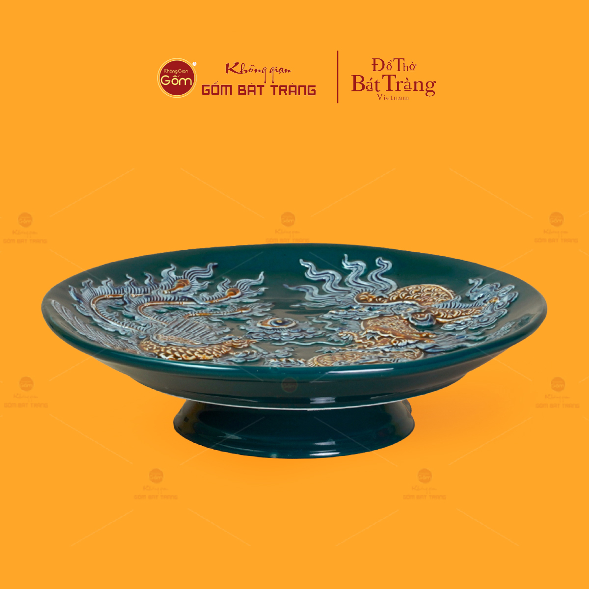 Mâm Bồng Thờ Men Lục Họa Tiết Long Phụng Trình Tường