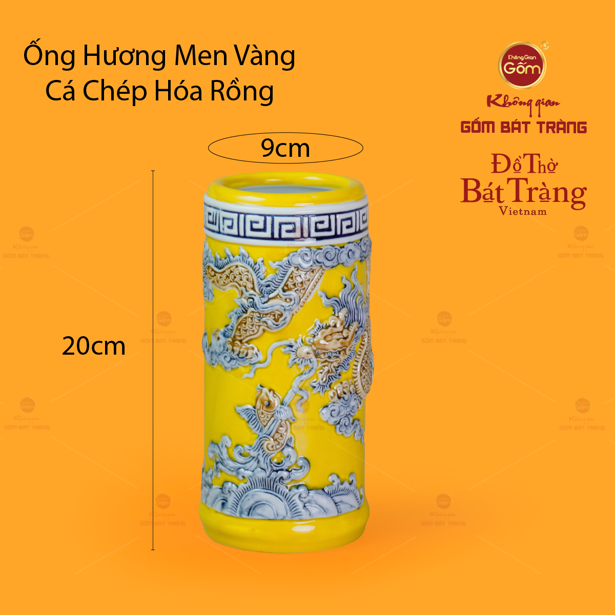 Địa chỉ mua Ống Hương Thờ Men Vàng Họa Tiết Cá Chép Hóa Rồng uy tín