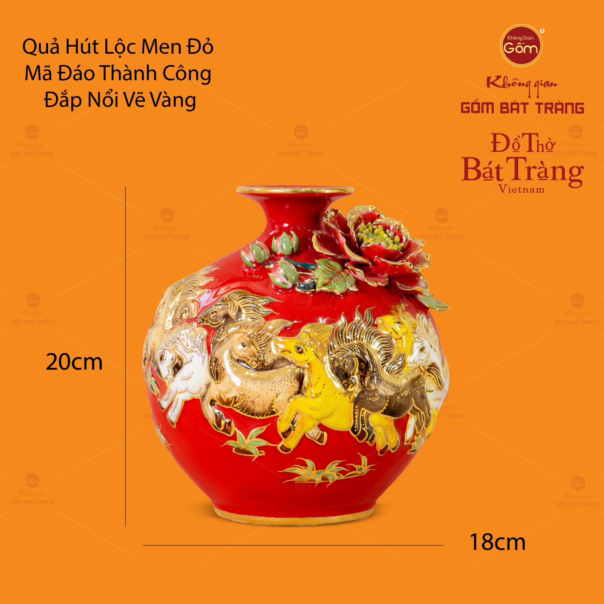 QUẢ HÚT LỘC MEN ĐỎ ĐẮP NỔI VẼ VÀNG MÃ ĐÁO THÀNH CÔNG