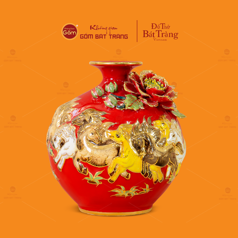 Quả Hút Lộc Men Đỏ Đắp Nổi Vẽ Vàng Mã Đáo Thành Công là một tác phẩm nghệ thuật đầy tinh xảo. Với thiết kế đặc trưng của dòng bình hút tài lộc, sản phẩm không chỉ đóng vai trò như một món đồ trang trí mà còn được xem như biểu tượng mang lại sự thuận lợi và phát đạt trong công việc. Điểm nhấn nằm ở nền men đỏ nổi bật, nơi tám chú ngựa mạnh mẽ đang phi nước đại được tạo hình 3D đắp nổi sống động, kết hợp cùng lớp phủ vàng kim 24K. Tất cả mang đến cảm giác tràn đầy sức mạnh, khát vọng chinh phục và thành công rực rỡ.
