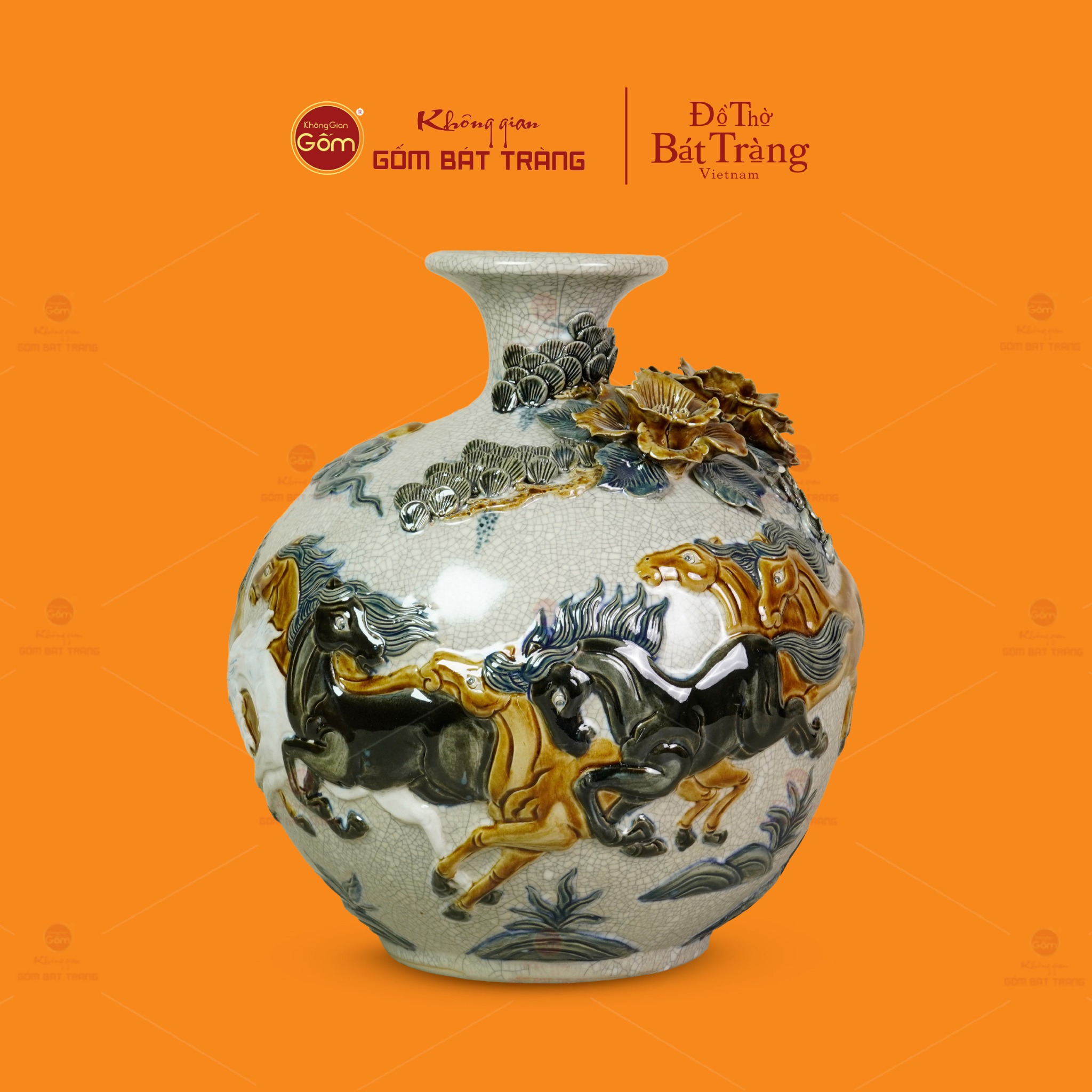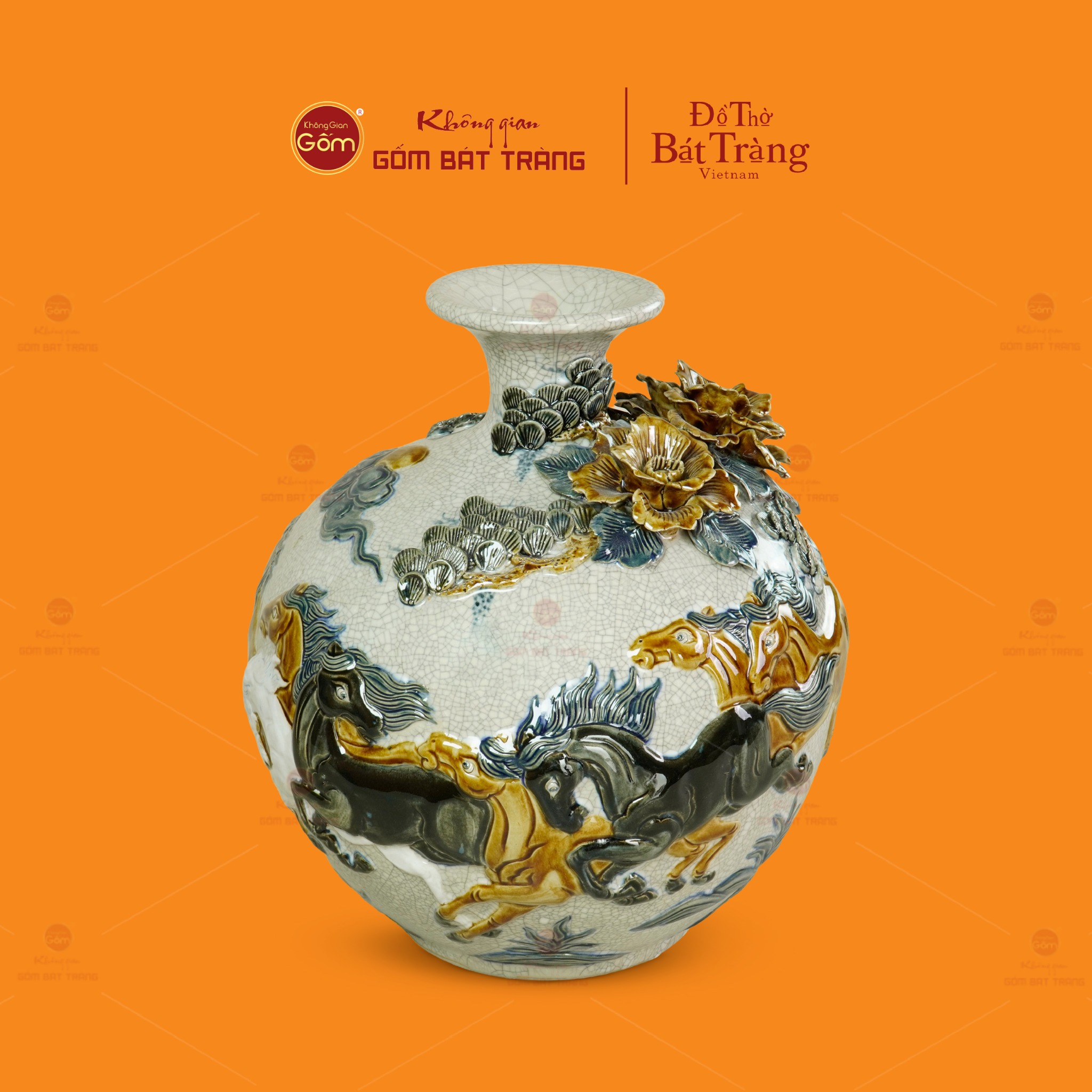 | Tên sản phẩm: | Quả Hút Lộc Men Rạn Đắp Nổi Họa Tiết Bát Mã |